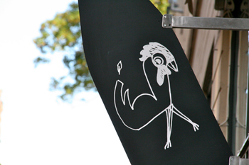 I stedet ligger det kunstneriske udtryk i inventarets funktioner. Stole og lamper er udformet af genboerne fra kunstnergruppen Superflex, logoet er tegnet af kunstren Thomas FOS, og både reoler og borde har ejerne selv designet og bygget.