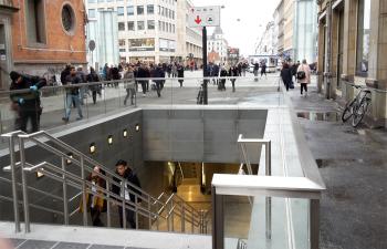 Dermed kan passagererne på byens travleste station via byens dyreste trappe gå direkte fra undergrunden og op på gågaderne, uden at skulle krydse Nørre Voldgade og stationspladsen først.