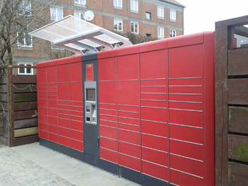 Muterede kæmpepostkasser skyder op i bybilledet. De er til høflig pakke-selvbetjening.